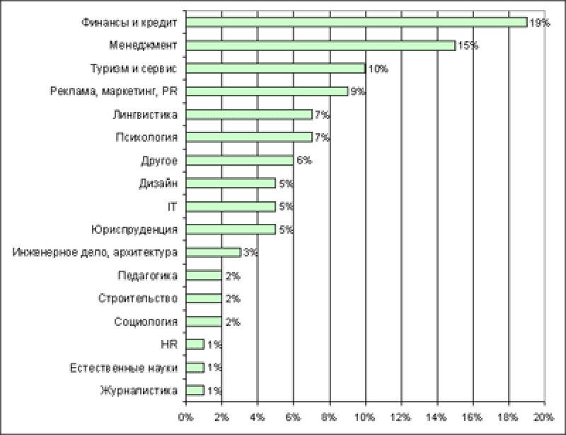 Московские вузы, хотя и с некоторым запозданием, стараются отвечать вновь возникающим требованиям. Все чаще и чаще проводится набор на такие узкоспециализированные учебные программы, как, например, «менеджмент в химической промышленности», «менеджмент в спорте», «антикризисный менеджмент» и т.д. Как когда-то каждый вуз открывал юридический факультет, сейчас многие открывают факультеты дизайна или, например, журналистики».